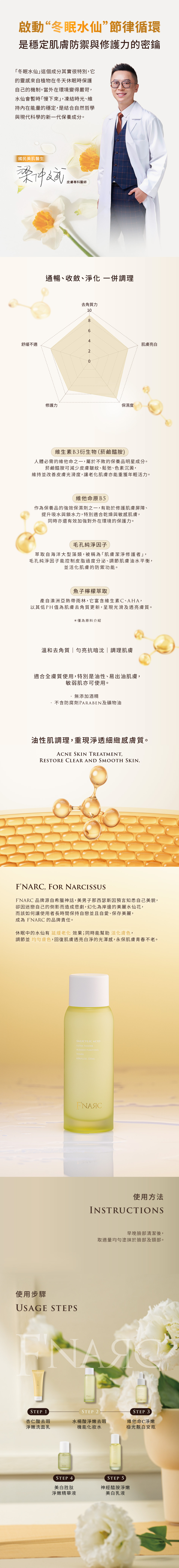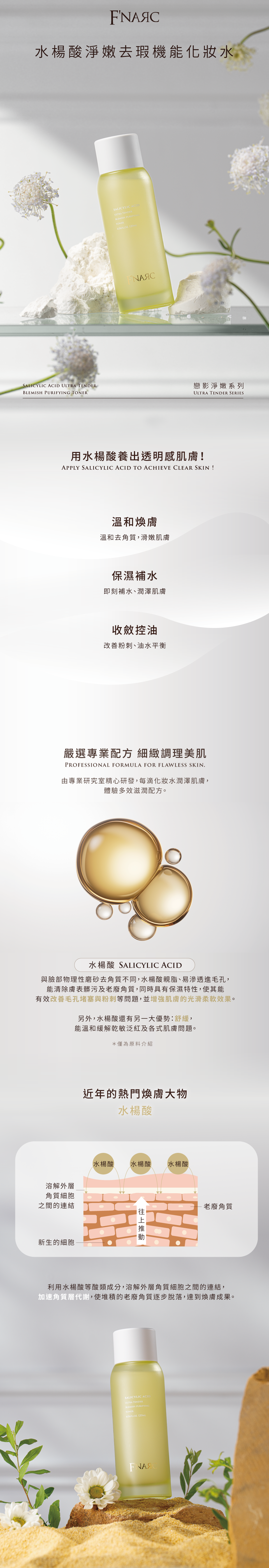添加水楊酸溫和代謝角質、清潔毛孔,搭配菸鹼醯胺與維他命B5協同調理油水平衡,舒緩泛紅不適。清爽保濕不黏膩,有效改善粗糙、暗沉與毛孔粗大問題,溫和煥亮肌膚,重現勻淨透亮膚觸。