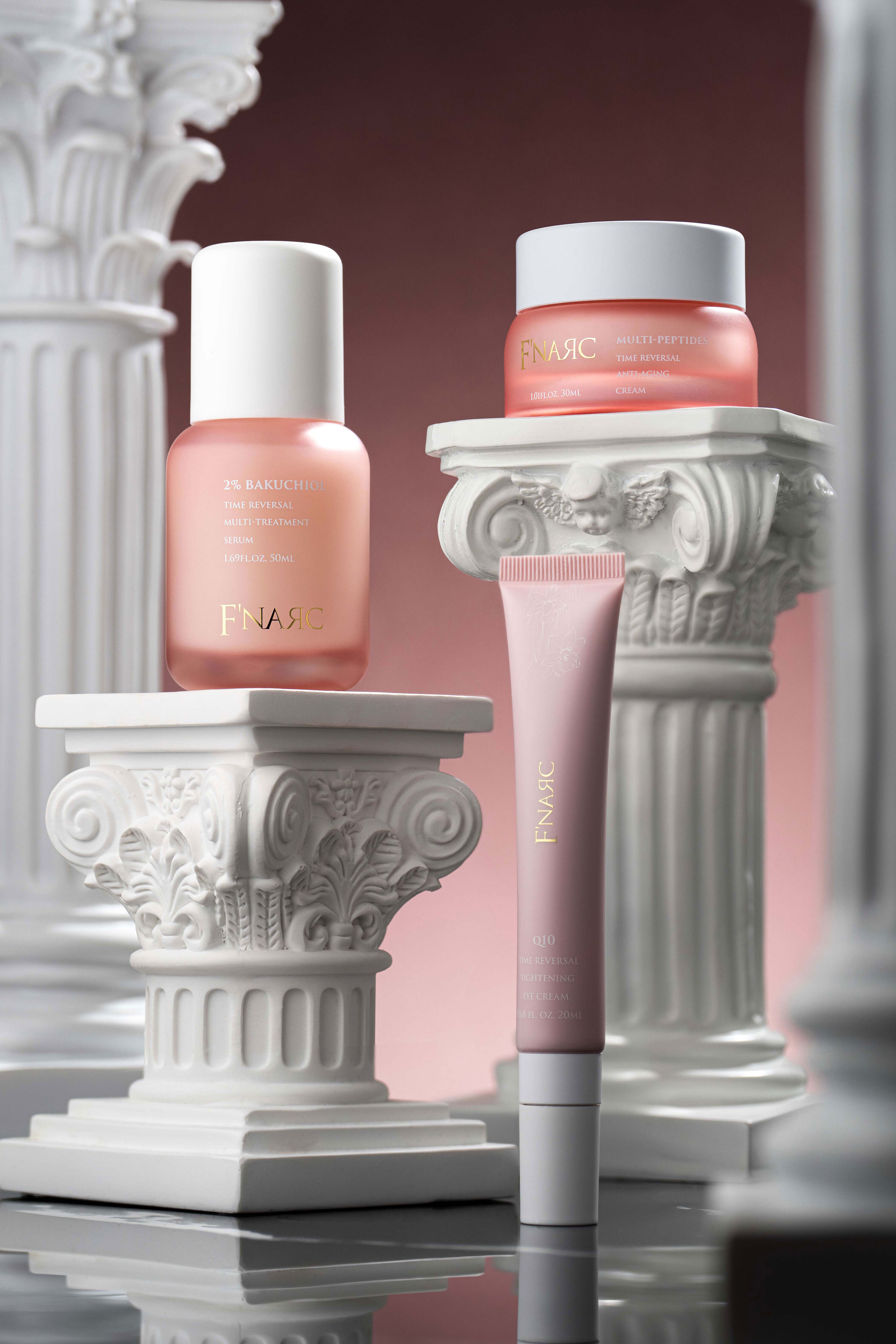 以2%補骨脂酚(Bakuchiol)為溫和替代A醇,有效撫平細紋、提亮膚色,減少刺激風險,孕期亦可安心使用。搭配多重胜肽抗老霜強化彈性支撐,並以Q10緊緻眼霜修護眼周疲態,三步驟溫和延緩老化、養成穩定透亮的肌膚狀態,適合初老與敏弱膚質日常抗老保養。